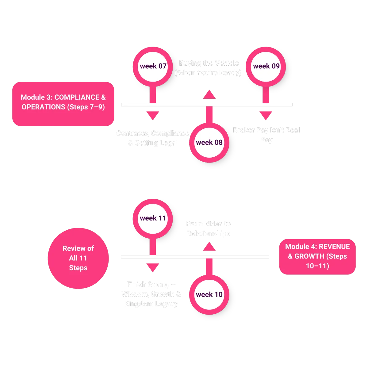Each week, you’ll walk through one of the 11 foundational steps and build it in real time.